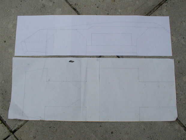 La mayoría de mi cero-construye son modelos basados en los más pequeños que se pueden comprar en las tiendas.  El 1/35 Halcyon fue bastante exacto y sirvió como una plantilla que me ayude a dibujar las vistas lateral y plano, que fue a través de una serie de modificaciones.  Años más tarde comprar un conjunto de planos para la versión original de la película y que habría ahorrado mucho tiempo!  Una vez estaba feliz de que corte el plano de la tapa de un viejo escritorio.