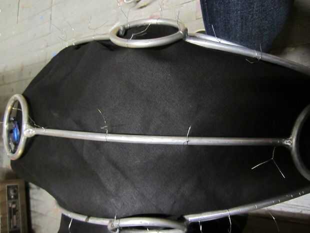 Tela negra fue utilizada para cubrir el marco desde el interior para cubrir la parte posterior de la cabeza.