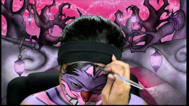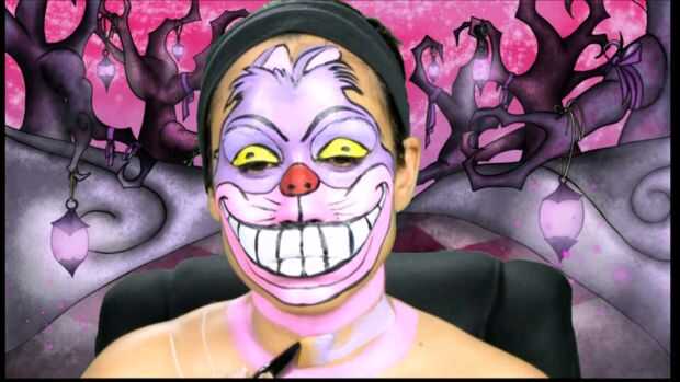 Paso 1: La reina Con rojo de mis paletas de maquillaje forever flash voy a colocar el corazón de Queens en el centro de mis labios.Paso 2: Cheshire Cat Utilizando lippie NYX en el color rosado que estoy colocando en tiras, luego tomando el color de r