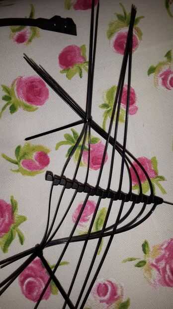 -Entré en las primera 3 abrazaderas de plástico junto con los 3 últimos con una amarra. Hice esto para las alas de izquierda y derecha. Tratar de hacer una forma de "D" como se muestra en las fotos;
