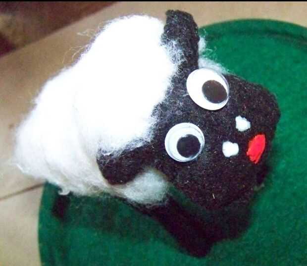 Su rostro está hecho de dos piezas de fieltro que mano cosidas y rellenas de trozos pequeños, luego pegado en dos ojos saltones y pintado las fosas nasales con la tela blanca, pintura y la boca con pintura de tela roja.