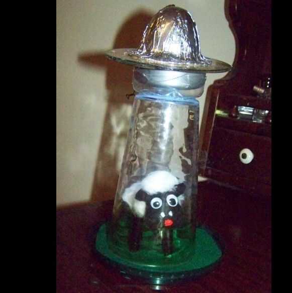 Coloque el vaso encima de ellos y poner la nave espacial dentro de la la parte superior fuera de la luz Mini touch y tiene usted mismo un extraterrestre secuestro Nite Lite!