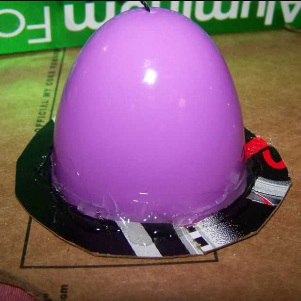 Entonces utilice una pistola de pegamento para fijar el círculo de cartulina para el huevo alrededor de la circunferencia.