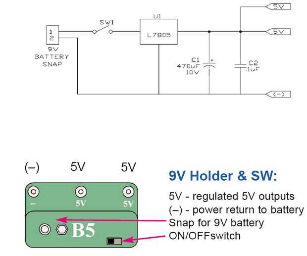 La forma más sencilla el rover de la energía y la energía el PICAXE es utilizar dos fuentes de alimentación diferentes que comparten un terreno común. Para el PICAXE, puede utilizar el bloque B5 circuitos Snap. La ventaja de utilizar este bloque es puede conectarse una batería estándar de 9 voltios el bloque y le entregará un confiable 5 voltios el PICAXE mediante circuito de regulador de tensión L7805 (ver circuito esquemático). El B5 también tiene dos salidas de 5 voltios--uno para el PICAXE y uno que puede utilizar para alimentar otro dispositivo.