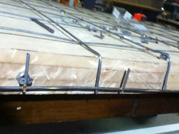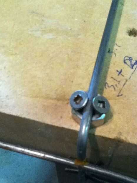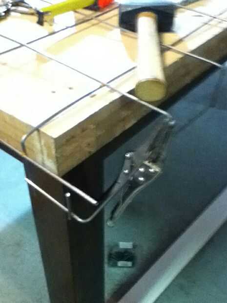 fijar el emparrillado con dos tornillos de madera en diagonal 1 cm (1\4 de pulgada) por encima de la mesa