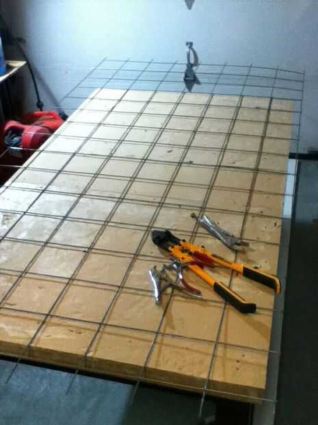Paso 3: armado de la mesa con este agarre de vice de emparrillado de hormigón utilizado a capas con la forma de la tabla