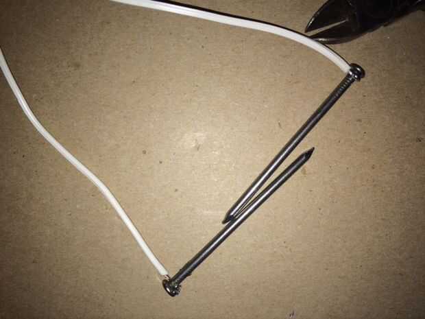 Tuerza el alambre expuesto alrededor de la uña recientemente soldada como se muestra en la imagen. Práctica estándar sugiere torcer en un movimiento amplio del reloj.
