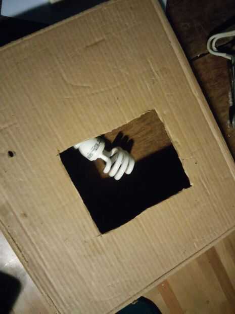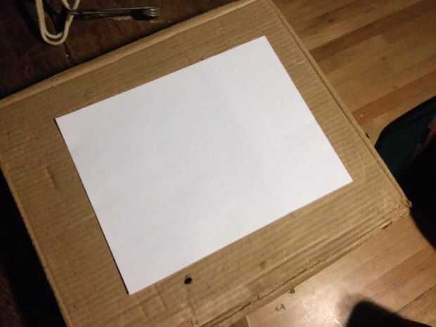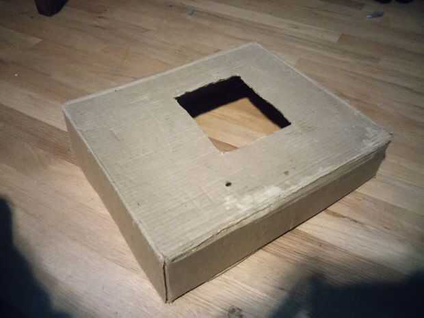 • Corte un agujero en la caja. El orificio era áspero cuadrados y aproximadamente 6 pulgadas cuadradas.