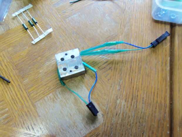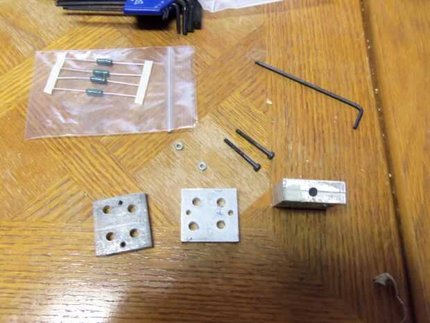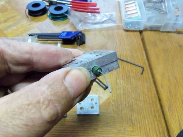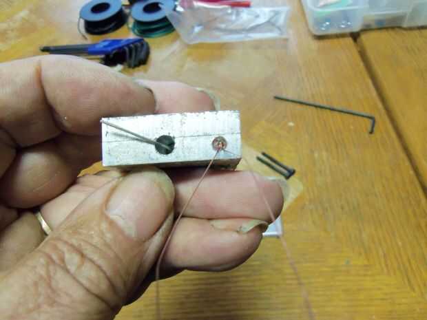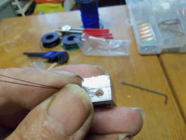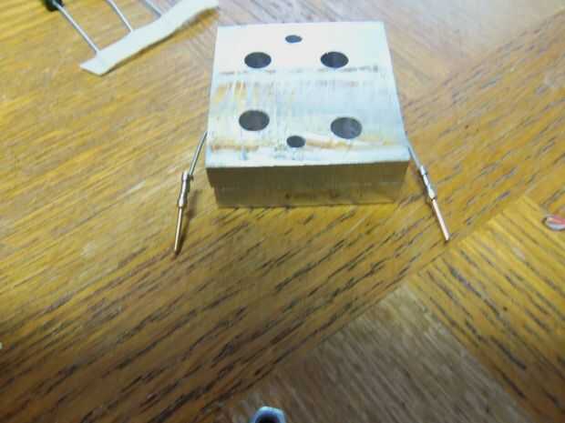 taladro 2 agujeros en el borde del centro uno a cada lado por 3mm pernos entonces medir la resistencia y perfore un agujero en el borde de la primera pieza