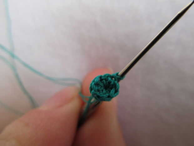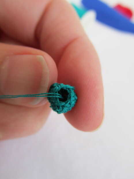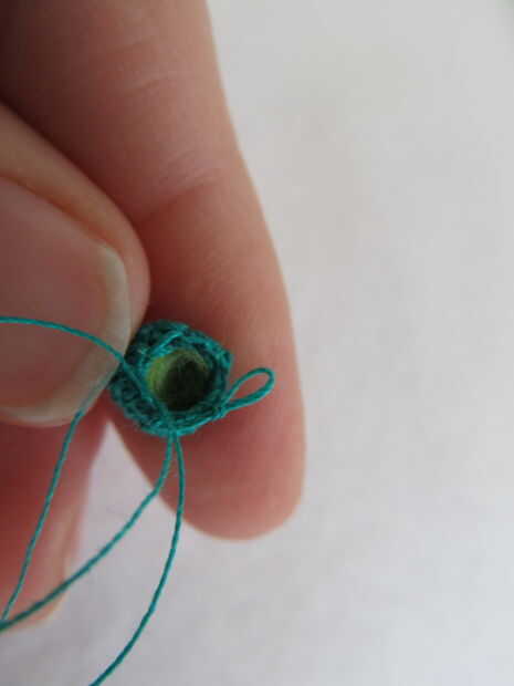Rellenar el cuerpo (yo usé un pequeño recorte de hilo verde)