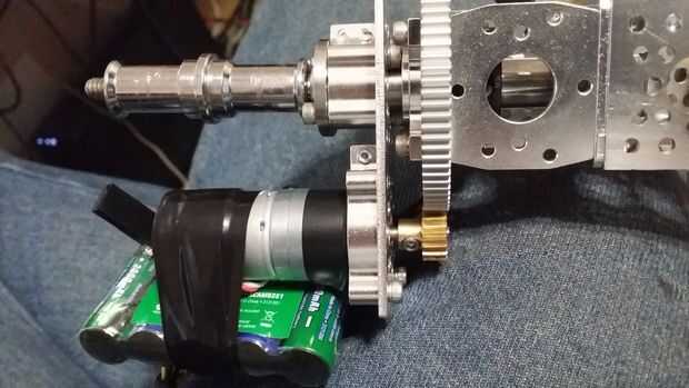 Conecte el motor de la bandeja para su montaje. Utilicé un motor de engranaje de la economía, y puesto que no hay montajes de cara, todavía existieron, usé una abrazadera de tubo de 1" con alguna cinta eléctrica para llenar el vacío exceso. Fije este conjunto en el soporte plano dual.