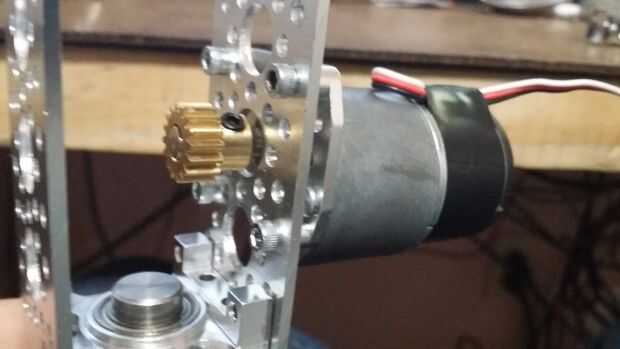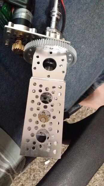 En la parte inferior de la Asamblea, coloque el engranaje de estímulo de 80T con el lado ahuecado hacia arriba y un cojinete plano monte abajo y colocar 4 tornillos en los agujeros de 1.5" de patrón. 2 de estos pernos se pondrá en el montaje del eje, los otros 2 se requieren placas tornillo.