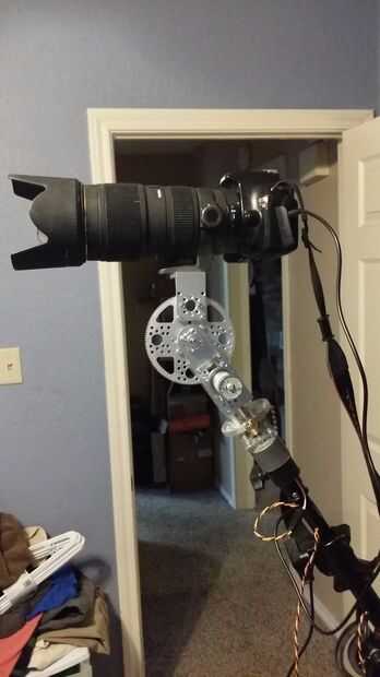 Cableado con cable de servo SC resistente trenzado. Tengo negro con cable como el común, rojo de tilt y pan, blanco, amarillo. Simplemente utiliza un arnés Y Servo y cortar un par de estándar barato 12" extensiones de trenzas.