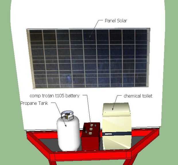 Cuadro 1 demuestra un 80 vatios panel solar, batería de ciclo profundo y WC químico.