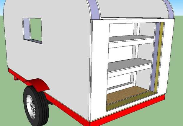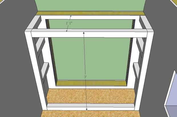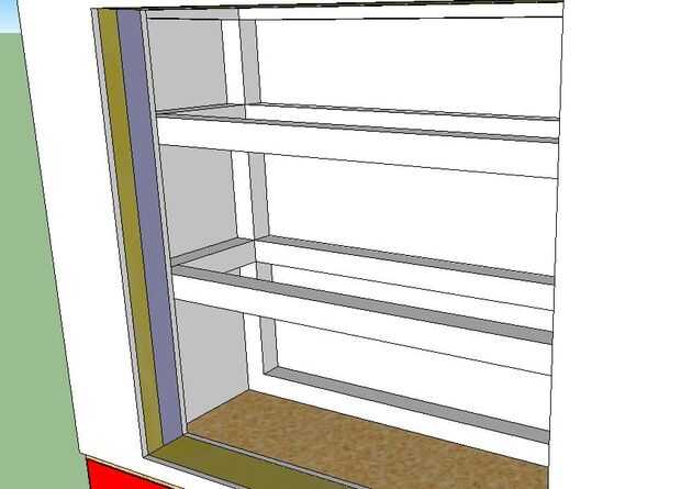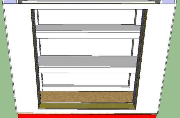 La estantería de la cocina es opcional y se puede hacer para satisfacer sus necesidades. Te recomiendo madera de abeto de 2 x 2 para las llaves y aquí muestro un dos estante diseño que maximiza el espacio. Si va a utilizar el camper de arrastre multiuso, podría hacer este estante como una unidad extraíble. Se deben medir su refrigerador, fregadero y otros equipos para altura de estante apropiado antes de construir esta unidad.