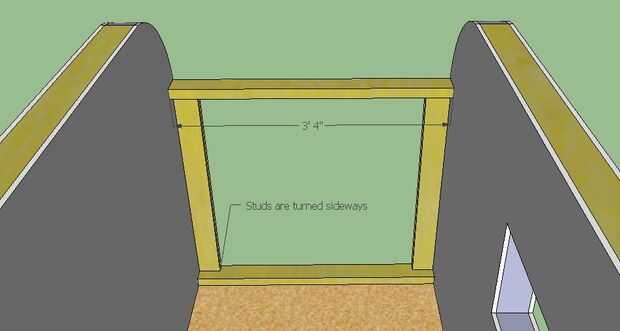 Construir el marco de la puerta utilizando clavos de 2 x 4. Fije a las paredes laterales, marco de piso de uno al otro con tornillos y adhesivo de construcción. Observe que los postes de madera a las paredes laterales son maneras de lado dado vuelta. Esto creará el marco de la puerta.