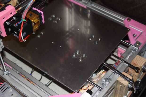 Hemos re perforado los agujeros de las esquinas de cama calor y rodamientos en la placa inferior.