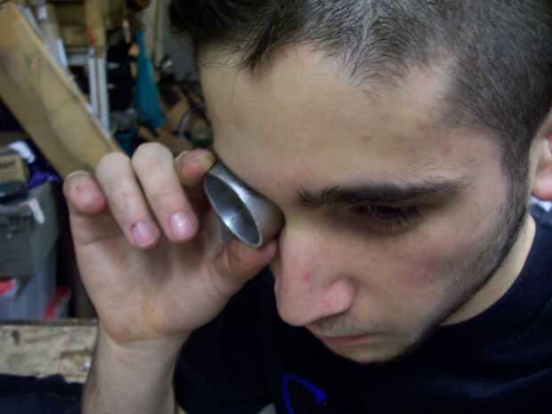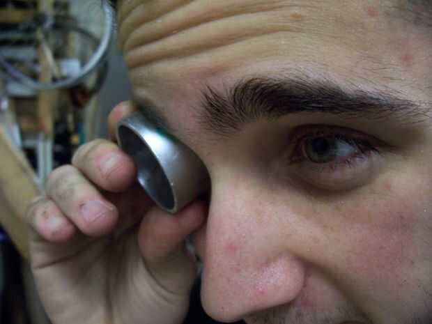 Ahora, vamos a tallar la parte del tubo hacia fuera para que el tubo no es jamming justo en su cara. He tratado de trazar todas las partes de mi rostro que se entraban en contacto con el tubo mientras lo sujeta hasta mi cara. Entonces, ir a la lijadora de banda e ir en él hasta que pensé que estaba hecho. Este fue un proceso iterativo, así que yo diría que sólo ve por ella. Si arruinara, siempre tienes más tubo! La molienda más grande que hice fue acomodar mi frente.