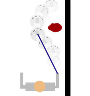 Para la evitación del obstáculo el eyeRobot utiliza un método donde objetos cerca del robot ejerzan una fuerza virtual en el robot alejándose del objeto. En otras palabras, objetos empujar el robot de sí mismos. En mi implementación, la virtual fuerza ejercida por un objeto es inversamente proporcional a la distancia al cuadrado, por lo que la fuerza de la presión aumenta a medida que el objeto se acerca y crea una curva de respuesta no lineal: