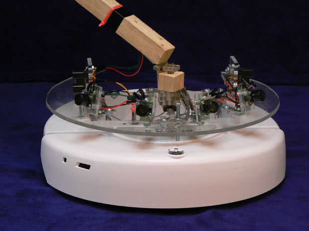 Usando los músculos de aire artificial, un brazo de robot muy flexible y pinza se pueden hacer.Este robot suave es accionado por aire comprimido y cada uno de los 11 músculos puede controlarse mediante un control remoto universal infrarrojo estándar