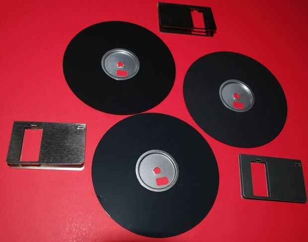 Para ello a once disquetes. No necesita 11 de cada parte, pero necesita 11 de esa pieza de plata que dobla sobre la parte superior. Puede utilizar el resto de las cosas para su propia creación inteligente.