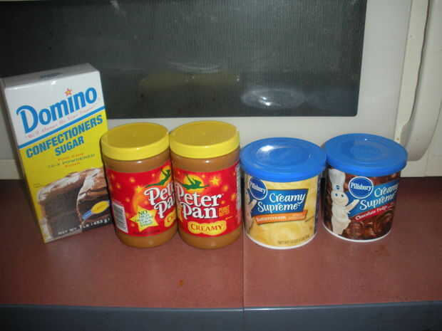 1 lata de glaseado de chocolate y 1 de vainilla o crema que fui con crema de mantequilla