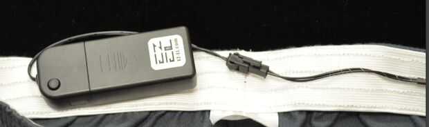 Para comenzar, coloque el inversor en el revestimiento de la cintura para ser cosida en el interior de los cortos por lo que se puede ocultar. Después de hacer esto, inicie su alambre de coser sobre el contorno del diseño y continuar a coser hasta que termine. Si el cable llega a ser difícil doblar a todos con sus diseños, usar un secador de pelo para hacerlo más maleable. Sin embargo, tenga cuidado de no usar el secador para demasiado tiempo en el alambre, ya que puede causar daño en el cable.