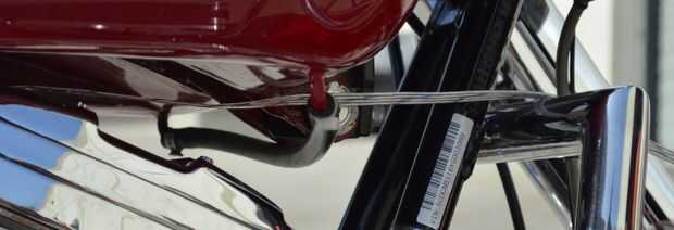 esta motocicleta roja vintage es bordeada con luces rojas del LED que destella. Echa un vistazo al tutorial si quieres saber cómo llegar de un viaje como este!Si quieres tutoriales como este, consigue más inspiración en https://ez-el.com/tutorialsIng