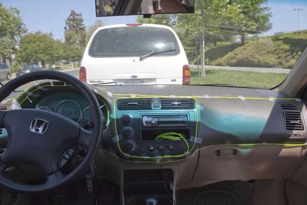 Plan el diseño de el alambre por el alambre en el coche con cinta adhesiva de montaje.