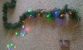 he querido mi árbol para ser totalmente portátil, así que me fui con 3 hilos de la batería accionado LED luces. No le gustaba que las luces eran tan brillantes cuando usted miraba "hacia a", así que tope cada luz con un poco de pegamento caliente y un trozo pequeño de papel de escribir. La luz era suave y brillante. Luego torció las luces en algunas