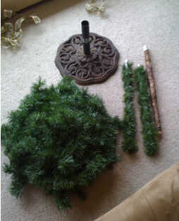 Esto es lo que el árbol parece todo doblado para arriba. El soporte es un Paragüero con pintura fresca. Usted tiene muchas opciones para un soporte o incluso ningún soporte, sólo colgar el árbol de un gancho en el techo!