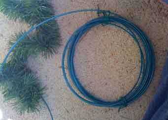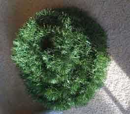 Pone la guirnalda verde junto a la verde alambre pesado. Comenzando en un extremo Coloque el alambre floral con un toque y espiral (sobre y bajo) del abrigo de toda la longitud. Tendrá que gestionar su alambre y garland por lo que no está brotando por todas partes. Luego la bobina hasta la longitud entera como una espiral gigante. El ancho de la bobina es el ancho del árbol. Quería un árbol algo estrecho así que muchas de las bobinas se "apiladas" es decir; prácticamente el mismo diámetro. También importa la diferencia... entre cada fila de la espiral. Usted quiere mantener una buena cobertura y lograr un aspecto contundente cuando el árbol está arriba. No quieres una bobina "s diametro para ser mucho más grande que la última bobina.