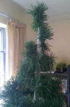 Colgar el árbol de pipa para trabajar de añadir separadores a cada fila. Ayuda a poder caminar completamente alrededor de árbol.
