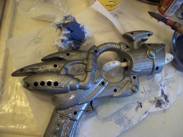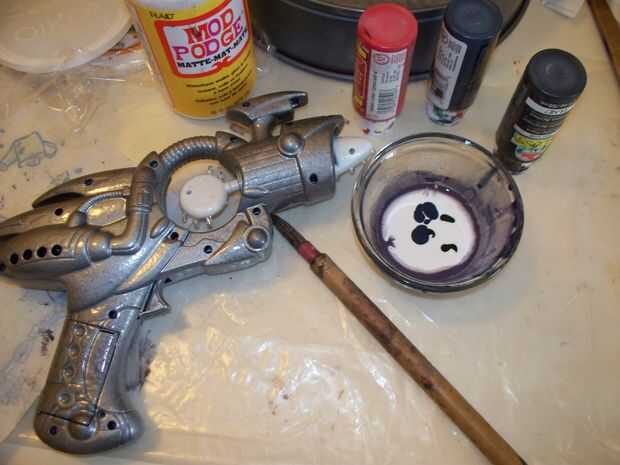 Así, mezclar algunas ModgePodge con pintura al Temple hasta llegar a una especie de gris/púrpura/azul de color - o lo que sea que prefiera - y pintura en. Hacer una sección en un momento - de la pintura en la mezcla, asegurándose de que entrar en las hendiduras donde se acumule suciedad y luego con una toalla de papel arrugado, lo seque apagado.