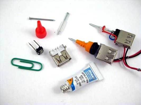 el conector usb tiene estas conexiones, 5v (1), (2) D, (3) D + y Gnd (4), D - debe ser conectado a la uña, el D + se conecta al botón táctil, el otro extremo de la necesidad de botón táctil para ser conectado a tierra.