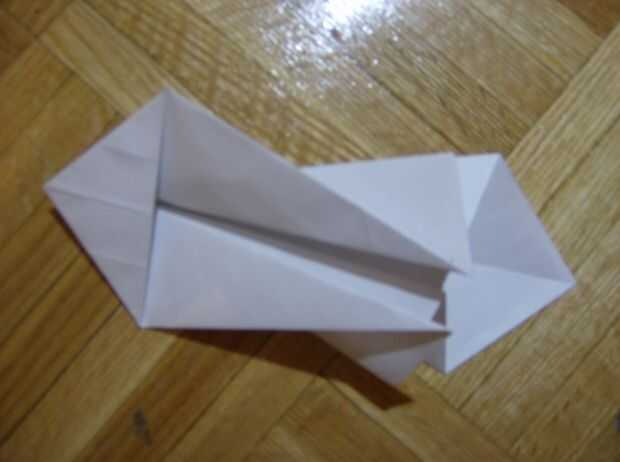 Dale la vuelta. debería ver una aleta. se pliegan y luego mirar la segunda foto. Luego, doble las 2 alas hacia fuera. en la foto 3, tienes que doblar la insode pliegues hacia fuera. Yo sólo he doblado 1 lado para que veáis la diferencia.