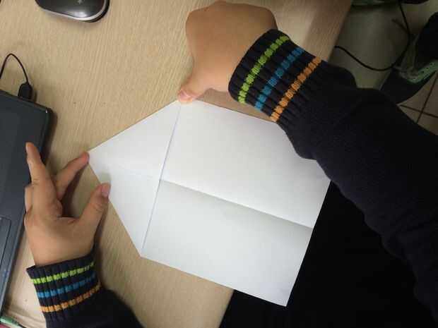 Dobla el papel y asegúrese de que los bordes estén en la línea que doblan y despliegan el papel