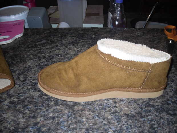 Corte todo el camino alrededor de la zona del tobillo. Usted debe tener algo que ahora se parece a una zapatilla