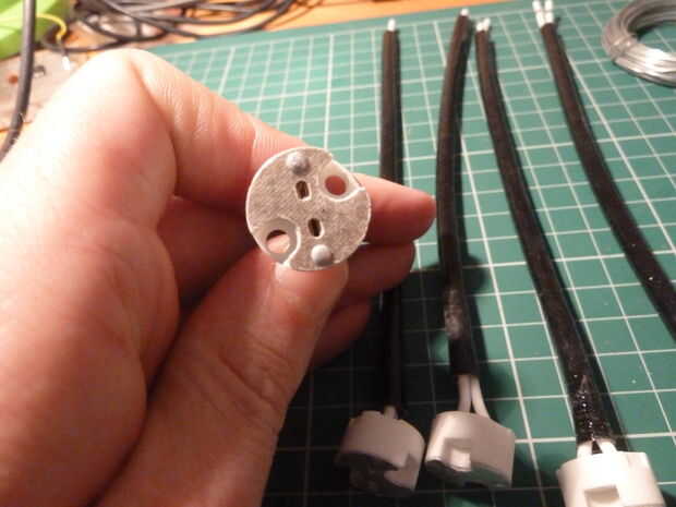 Lamentablemente los bulbos del LED ordené han tomado siempre para llegar y no puedo comprarlos en mi tienda de hardware, así en este instructable usé bombillas halógenas. Esto ha hecho mi bulbo impreso 3D piezas adosadas bastante inutil consiguen demasiado calientes, ya que he tenido que aumento que el cableado y alimentación de la corriente más alta. Se adaptar los LEDs cuando llegan y se intenta enviar una actualización.