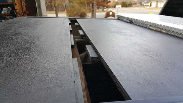 Corte la madera de 3 "x 62" en longitudes iguales 7. Y tornillo en la parte inferior de cada panel. Stager es compatible las juntas en cada panel de este modo la costura.