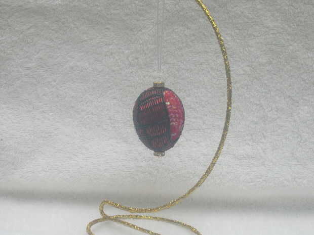 El tiempo total para este proyecto supera 40 horas, sin incluir tiempo para el secado y ajuste. Hay 770 cuentas y lentejuelas, y cada uno fue atado en un momento.