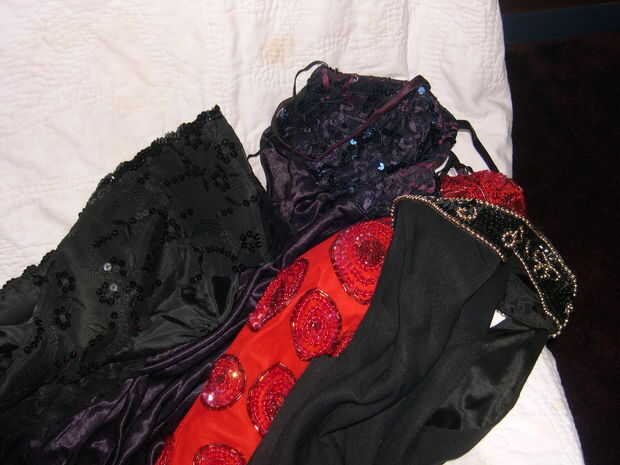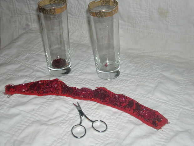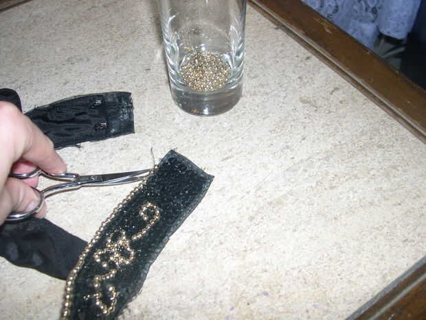 Todas mis cuentas fueron ganadas vestidos de baile de antaño. Era bastante fácil de cortar y tirar. Y ya que se cosen en vez de pegado, todo en perfecto estado.