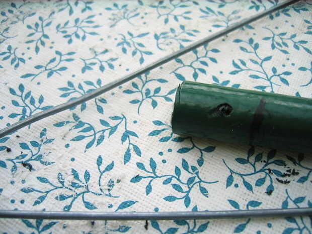 Doblar el alambre un poco para que no sólo se deslice fuera de la manguera.
