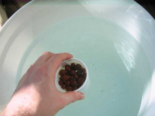 Las bolas de arcilla tienen un polvillo naranja sobre ellos, usted va a necesitar lavar.