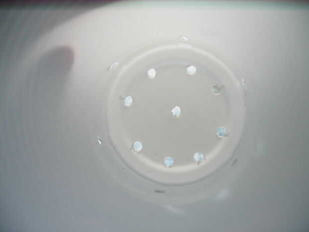 Encontré más fácil de poner en las copas taladradas y baje la taza en un cubo de agua.