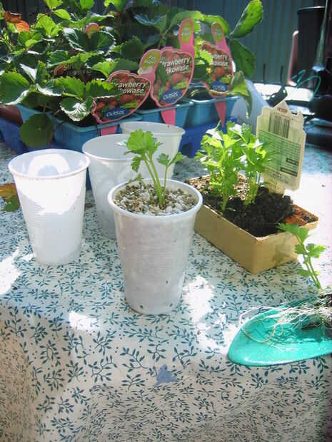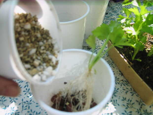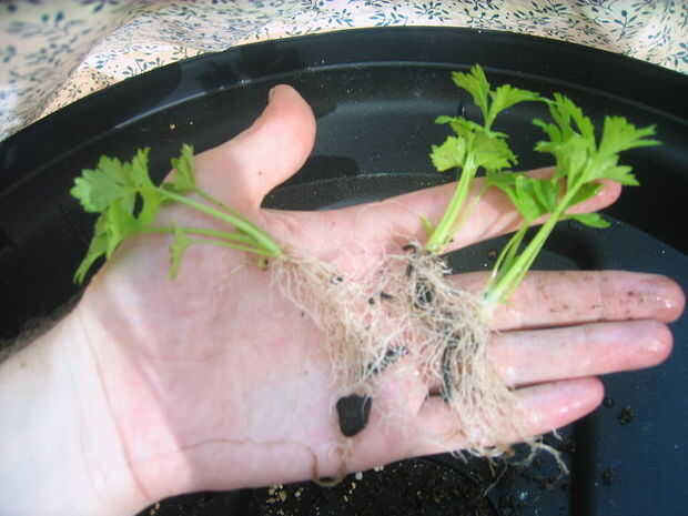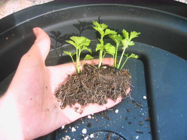 Si las raíces están enredadas (como con mi apio), usted necesitará lentamente tire las plantas aparte, lo mejor posible teniendo cuidado con las raíces. (imagen 5)