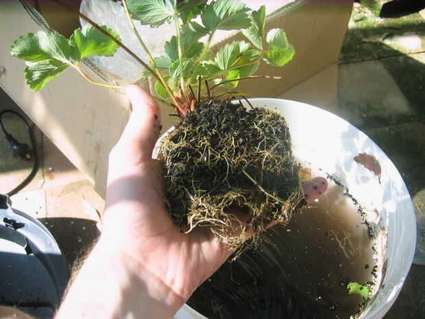 Con la bola de la raíz es tan grande, también encontré que necesitaba un poco de presión de la manguera de jardín para lavar la suciedad.