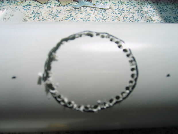 Ahora empuje la broca, lentamente de agujero a agujero, simplemente conecta los puntos hasta que abandona el centro.