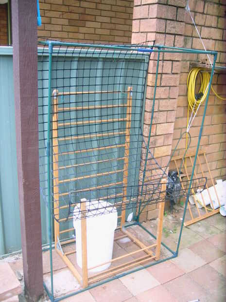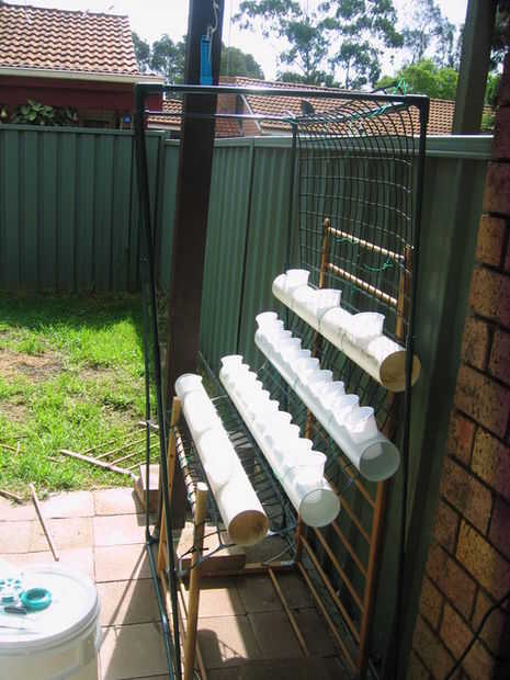 Funcionó desde el marco superior de mi invernadero (cubierta), hasta el frente, asegurándose de que estaba en un ángulo decente para mantener los tubos en un ángulo aproximado de 45 grados.