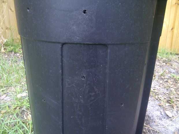 Compost de mis desechos de cocina, hierba cortada y hojas: Utiliza cubos de basura negro plástico galón 33, luego perforar los agujeros de 3/8 pulgadas todo alrededor del cilindro. Rodar cada pocos días produce un suelo margoso oscuro en unas semanas. Yo esto había combinado a algunos comprado suelo con compost adicional y mezclado con mi suelo arenoso existente.